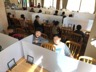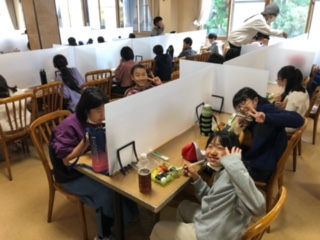 小雨のため、ランチは食堂になりました。パーテーションで感染症対策もバッチリです!