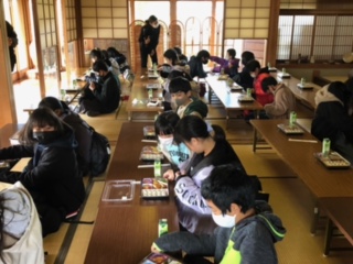 子どもたちは同じ方向で黙食に徹していました!さすがリーダーの姿でした!