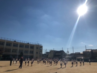 冬晴れの気持ちのいい運動場では、子どもたちがなわとびにチャレンジしています。