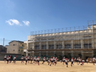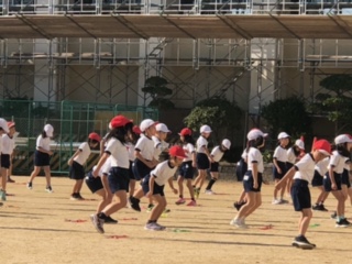 とびなわを使った準備運動のあとは、いろいろな技を試しました!その後、持久走にもトライしました!「10周走ったから足筋肉痛!」と声にする子どももいました!これからの季節は、寒さに負けず体力をつける時季にも入ります。なわとびチャレンジは続きます!