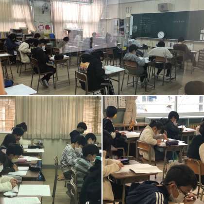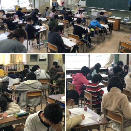 朝から雨模様の中、今年度の学力経年調査が始まっています。