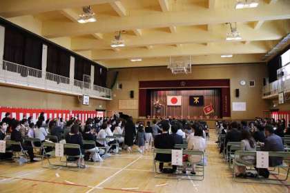 入場時には、温かい拍手に包まれながら新入生46人が入学してきました。
