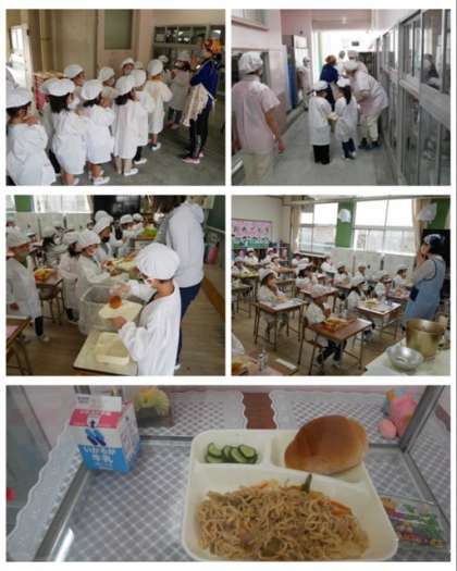 そして、お昼には初めての給食をいただきました。給食当番さんは、しっかり当番の仕事ができました。