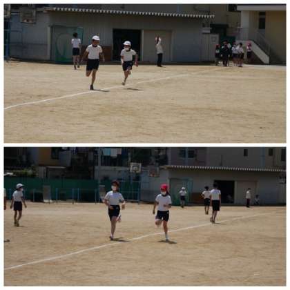 6年は、体育科の時間に新スポーツテストに向けて50m走をしていました。