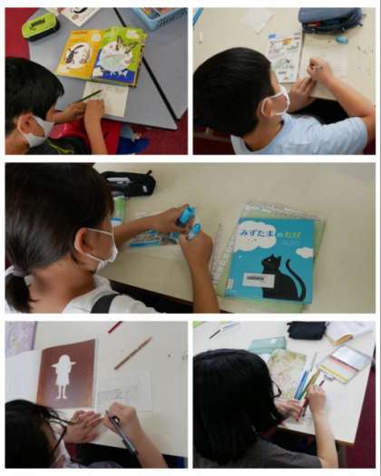 図書委員会は、おすすめの本を選んで紹介ポスターを作っていました。みんなが「読んでみたい」と思えるようにイラストも描いていました。