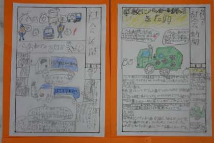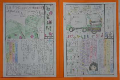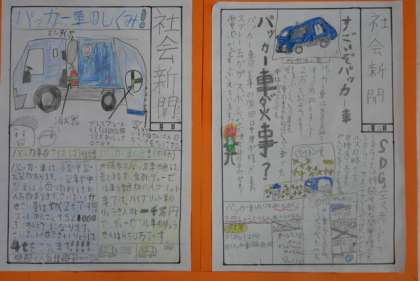 4年生は、昨日のパッカー車の見学や環境事業局の方から教えていただいたことを新聞にまとめました。