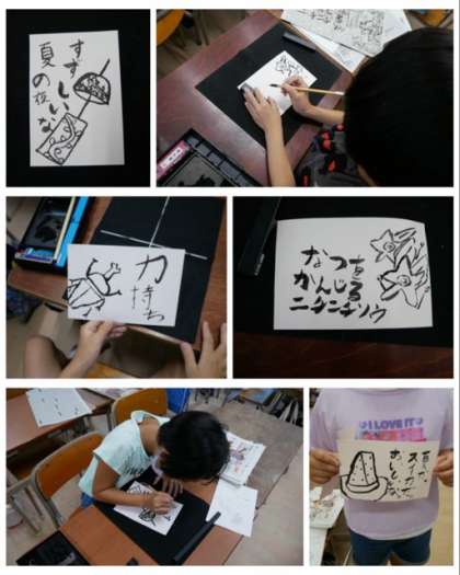 4年生は、墨汁と毛筆で絵手紙作りに挑戦していました。なかなかの力作揃いです。