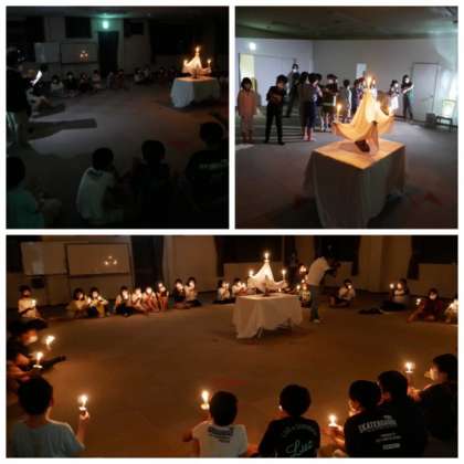 夕食を済ませ、入浴を済ませた後、雨天のため室内でキャンドルファイヤーを行いました。