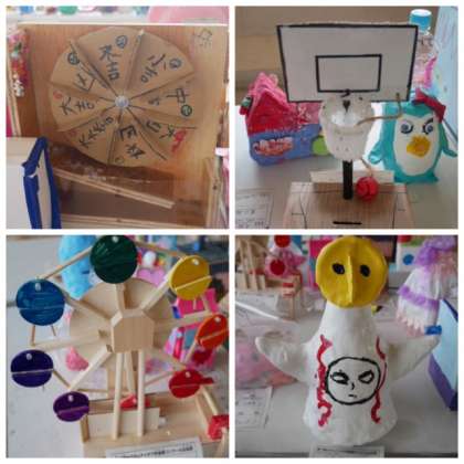 太陽の塔をモチーフにしたものや、カラクリ工作などの楽しい作品がたくさんありました。