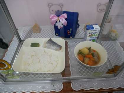 今日の給食は、「ごはん、牛乳、さごしの塩焼き、豚肉とじゃがいもの煮もの、オクラの炒めもの」でした。