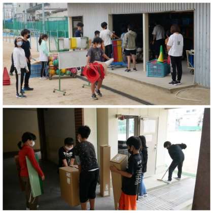 運動委員会と放送委員会は、運動会で使った道具や機材をきれいに整理しました。