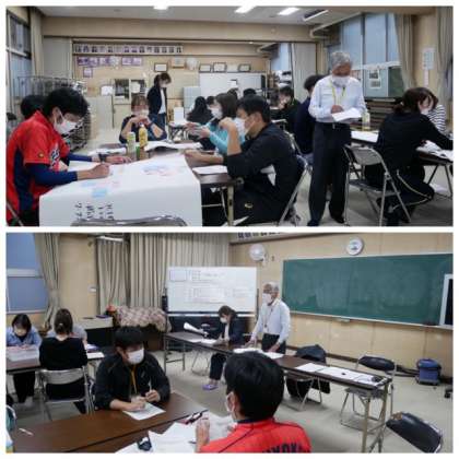 放課後には、本日の授業を振り返って討議会を開き、スクールアドバイザーの池宮先生から指導講評をいただき、研究を深めました。