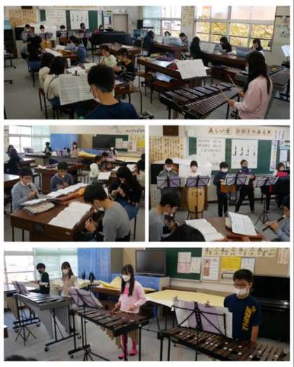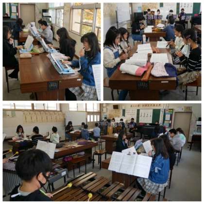 5年生は、音楽科の学習で「マンボ No.5」の合奏をしました。自分たちの合奏を録音して、それを聴いて改善点を見つけ、次の合奏に活かしています。