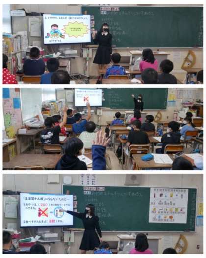 4年生は、栄養教諭の方から、「食べた分だけ運動しよう」をテーマにして、カロリーの摂りすぎには注意をしましょうという学習をしました。