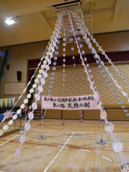 また、放課後事業「いきいき」でも80周年をお祝いして作品を体育館入口に展示しています。併せてご鑑賞ください。