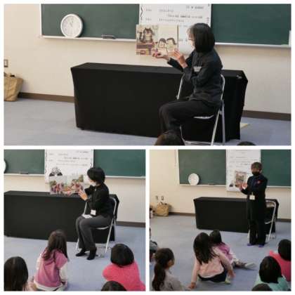 1年生は、生野図書館あじさいブッククラブの方から、「うんちのちから」「しくしくぶたはわらうかな」「タンゲくん」「さるじぞう」「カイくんのランドセル」の絵本や紙芝居をしていただきました。