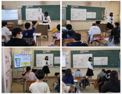 6年生は、栄養教諭の方から「わけあって書かれています」をテーマに食品表示の見方について学習しました。