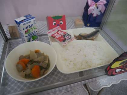 今日の給食は、節分の行事献立で、「ごはん、牛乳、イワシの生姜醤油かけ、含め煮、いり大豆」でした。イワシの生姜醤油かけは、骨抜きがされていて、とても食べやすかったです。