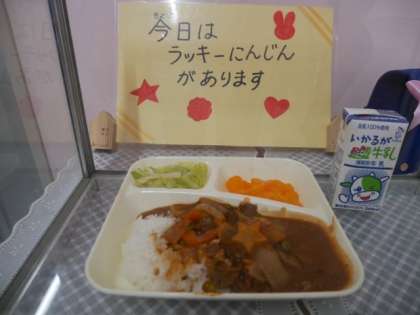 今日の給食は、「ごはん、牛乳、ハヤシライス、キャベツのバジル風味サラダ、みかん(缶)」でした。ハヤシライスは、よく煮込まれていて料理中も給食室からとてもいいにおいが漂ってきていました。
