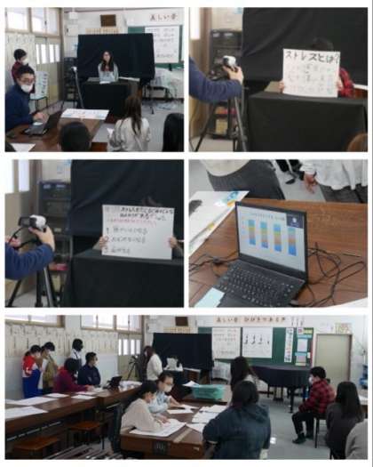 今年度の学校保健委員会は、ストレスマネジメントをテーマにして健康委員会がリモートで発表しました。ストレスとはどういうものかをクイズや、全校アンケートの結果や人形劇を通して伝えました。