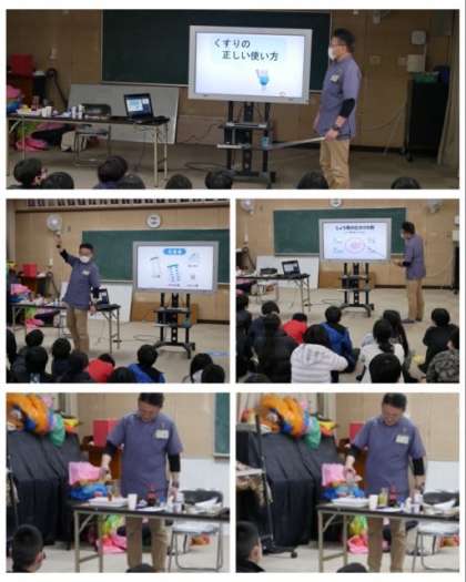 6年生は、学校薬剤師の方からくすりの正しい使い方について、お話していただきました。薬は、お茶や清涼飲料水で飲んではいけないことを目の前で実験して見せていただいたので、とてもよく理解できました。
