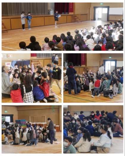 今日は、全校児童で「卒業生を祝う会」を開きました。