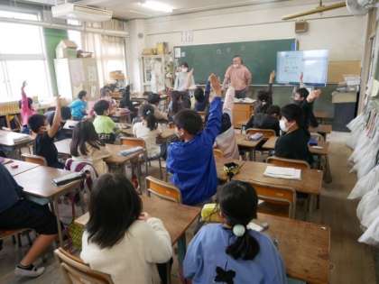 外国語活動では、C−NETの先生と楽しく会話をしながらクイズを楽しみました。