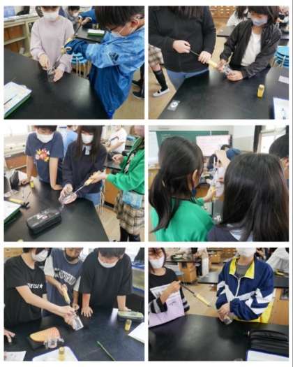 6年生は、理科の実験で気体検知管を使って、ものを燃やす前と後で、酸素と二酸化炭素の割合がどのように変化するのかを調べました。