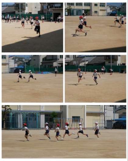 4年生は、体育科の学習でスポーツテストで実施する50m走に向けて、スタートダッシュの仕方を繰り返し練習していました。記録が向上するようにがんばれ!