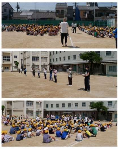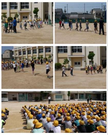 避難の放送があって、全学年の児童がハンカチを口に当てながら静かに素早く運動場に避難できました。