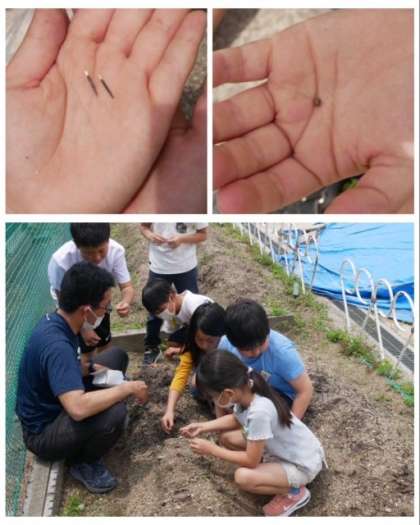 3年生は、学習園にマリーゴールドとほうせんか、ひまわりの種をまきました。