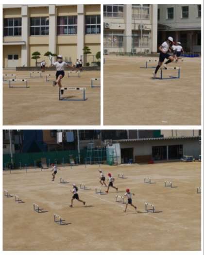 6年生は、体育科の学習でハードル走に取り組んでいます。抜き足の使い方などを確かめながらハードルを素早く走りぬけられるようにしていました。