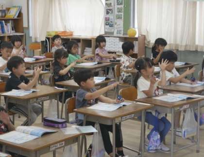 1年生は、音楽科の学習でカスタネットを使って楽しくリズム打ちをしていました。
