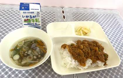 今日の給食は、タコライス.もずくのスープ.焼きじゃが.牛乳です。