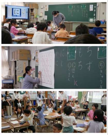 1年生は、国語科「50音(ひらがな)をおぼえよう」の学習で、ひらがなを書いたマスから乗り物や動物の名前を探し出すゲームをしながら楽しくひらがなを覚えました。