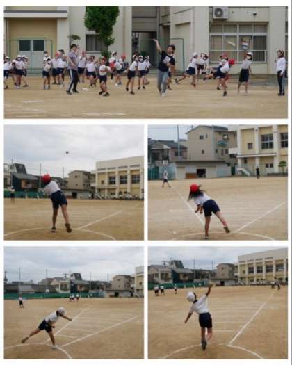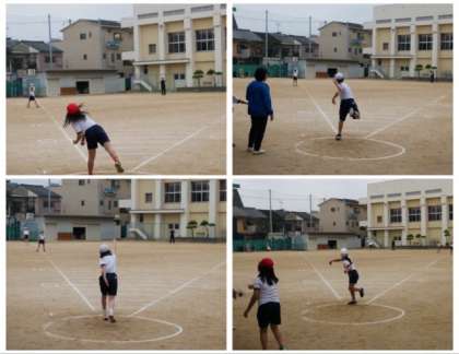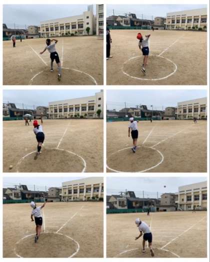 上から4年生、5年生、6年生のソフトボール投げの様子です。