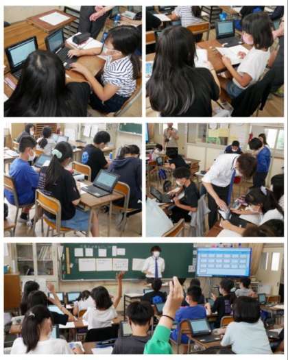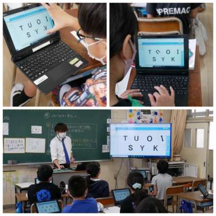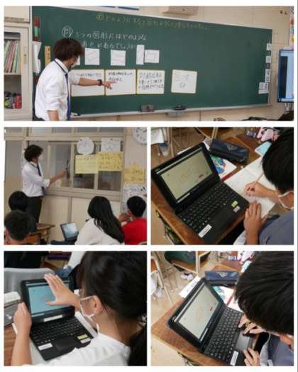 6年生は、算数科で「点対象な図形」の中心を回転させると、元の図形と重なることを一人一台学習者用端末を操作して学習しました。