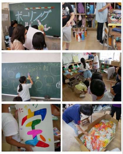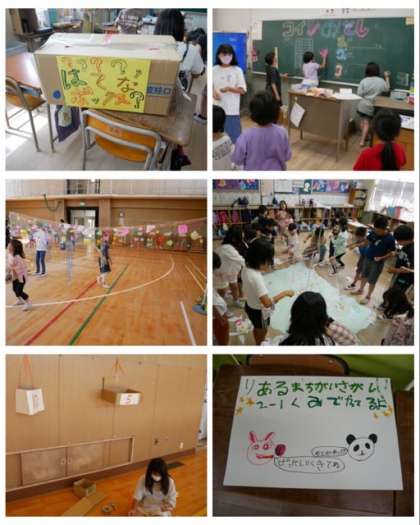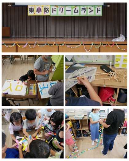 明日の東小路ドリームランドに備えて、縦割り班で、お店の準備をしました。準備が終わった班は、お店役とお客役に分かれて本番の練習をして楽しみました。