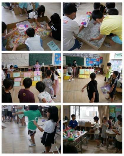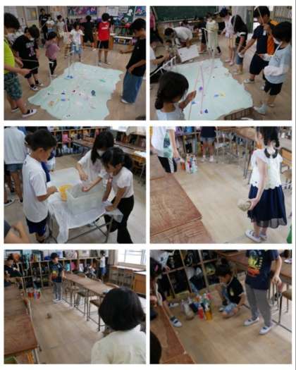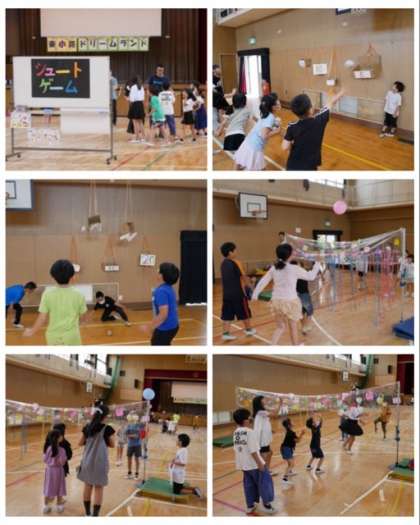 宝さがし、ストラックアウト、まとあて、魚つり、コインおとし、ボウリング、シュートゲーム、風船バレーのお店の様子です。