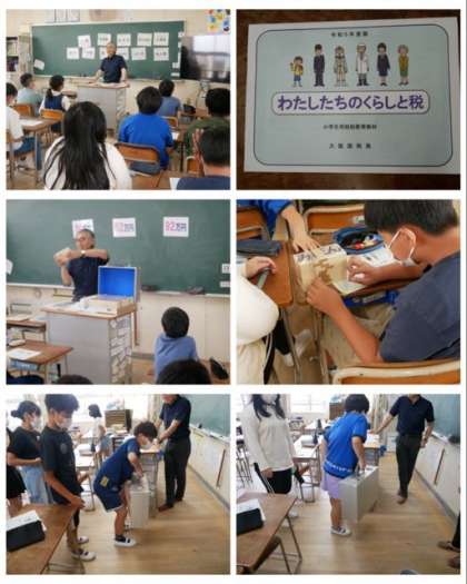 6年生は、生野税務署の方に来ていただき、税金はどうして必要なのかを学習しました。学校で勉強するために一人年間92万円が必要であるが、ほとんど税金で賄われていることを知りました。また、ジュラルミンケースに入った1億円の札束の重さを体感して、改めてお金の大切さを知りました。
