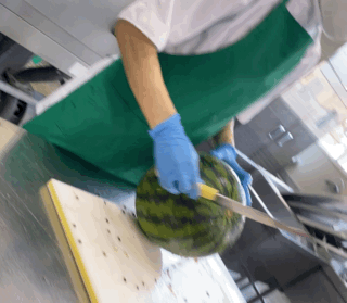 皮が割れないように、切り目を入れている様子です。