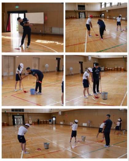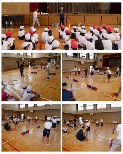 6年生は、ジュニアゴルフクラブチーム連盟の方とプロゴルファーの方に来ていただき、体育館でも楽しめるスナッグゴルフを教えていただきました。