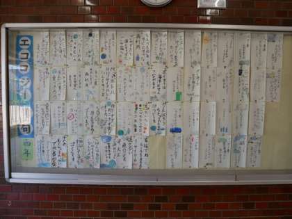 7月の玄関掲示は、4年生でエコロジー俳句を貼り出しています。