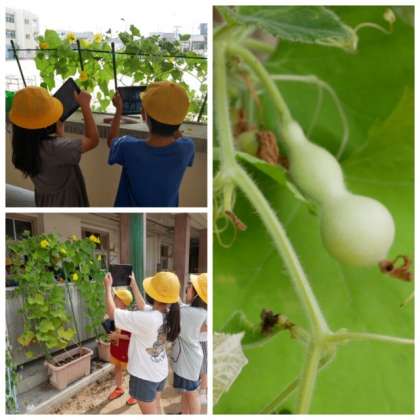 4年生は、春から育ててきたひょうたんの成長を一人一台学習者用端末のカメラ機能で記録しました。よく見ると、かわいいひょうたんが実っていました。