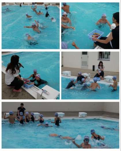 泳力テストのあと、東小路小学校のプールに入るのは今日が最後なので、低学年の頃を思い出してクラス対抗で宝ひろいゲームをしました。勝敗は、2回戦して仲よく1対1の引き分けでした。