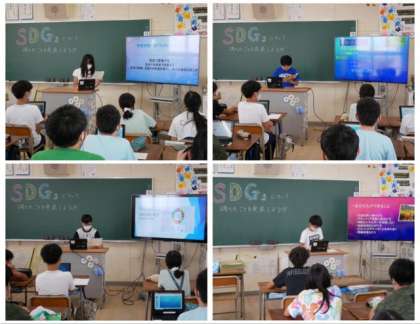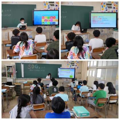 6年生は、総合的な学習の時間にSDGsについて17の目標の中から調べてみたい項目を選び、プレゼンにまとめたものを発表しました。