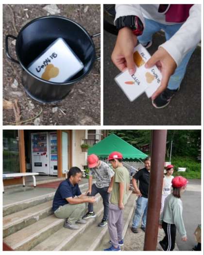 夕飯のカレー作りのために、食材探しゲームをしました。