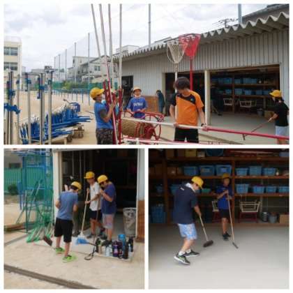 運動委員会は、運動会に向けて体育倉庫の中をきれいに掃除しました。