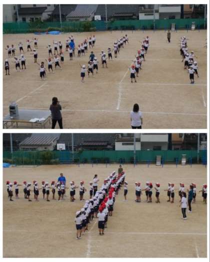 2年生は、運動会の団体演技を1年生と合同で練習しています。