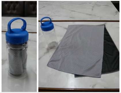 運動会の練習をがんばっている子どもたちに、PTAより熱中症対策として一人一人にクールタオルをプレゼントしていただきました。